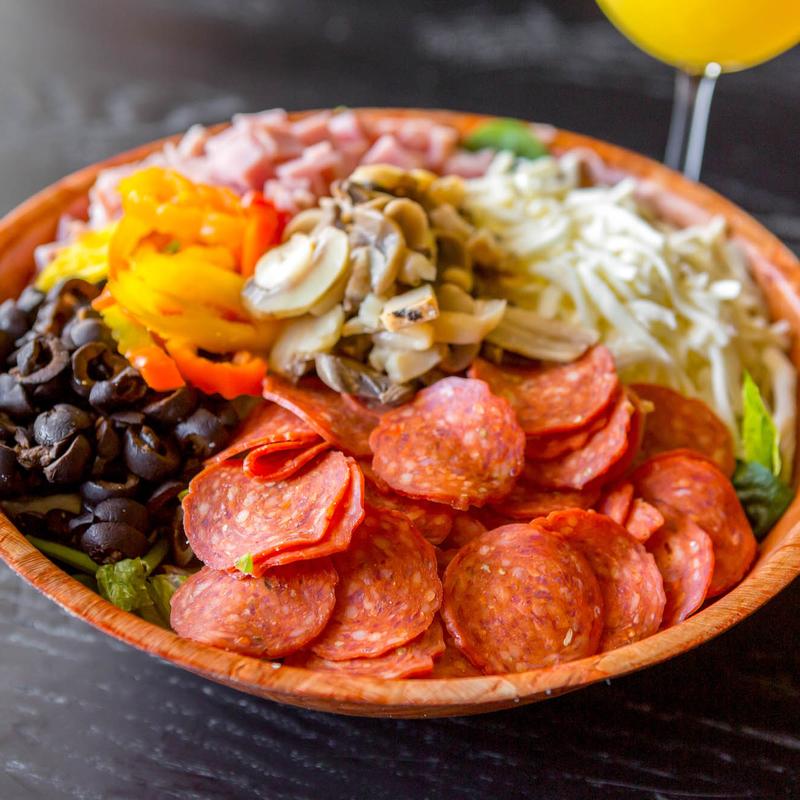 10 inch | 14 inch | 16 inch • With your choice of our homemade classic red sauce or creamy garlic white sauce on our thin crust • Toppings: Pepperoni, Sausage, Ham, Bacon, Chicken, Onion, Green Pepper, Hot Pepper, Jalapeño, Mushroom, Green Olive, Black Olive, Tomato, or Spinach • Extra Topping | Extra Half Topping • You can add Cauliflower Crust to get GF pizza.