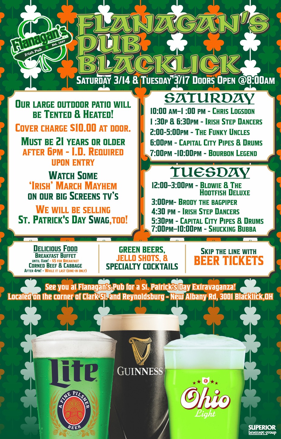 Get ready to start celebrating St. Patrick’s Day this Saturday, March 14th!